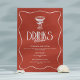 Defina o tom com este menu de bebidas personalizáveis de bachelorette, rosa e vermelho, de dois lados! Possui fontes retrorativas ousadas e design lúdico — perfeito para o carrinho de bar, decoração de mesa ou exibição de coquetéis de assinatura.