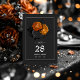 Cartões de números de tabela com tema gótico floral, em acentos de laranja e preto, com um menu no verso.