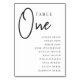 Cartões simples e chic em preto e branco clássico fazem uma declaração elegante no seu casamento ou evento. Design apresenta "mesa [number]" em uma combinação de olhares de serif clássica e de caracteres de script manuscritos, com nomes individuais de convidados por baixo. Design repete-se de ambos os lados. Cartões numerados individualmente vendidos separadamente; solicite cada número de tabela individualmente da nossa coleção.