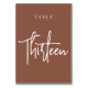 Cartões simples e chic em tons de terra, marrom e branco, fazem uma declaração elegante no seu casamento ou evento. Design apresenta "mesa [number]" em uma combinação de olhares de serif clássica e de caracteres de script manuscritos. Design repete-se de ambos os lados. Cartões numerados individualmente vendidos separadamente; solicite cada número de tabela individualmente da nossa coleção.