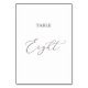 Esta delicada mesa de caligrafia esticada 8 é perfeita para um casamento moderno. A design romântica minimalista apresenta uma magnífica e elegante tipografia marrom de cinzas sobre um fundo branco com um aspecto simples e limpo. A placa impressão na frente e atrás (lado duplo). Os outros números de tabela na coleção são vendidos separadamente.