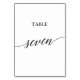 Esta elegante mesa de caligrafia negra é perfeita para um casamento simples. A design neutra apresenta uma carta minimalista decorada com tipografia romântica e caprichosa. A placa impressão na frente e atrás (lado duplo). Os outros números de tabela na coleção são vendidos separadamente.