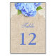 Cartões de Mesa de Casamento Rustic Blue Hydrangea Lace & Burlap.