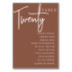 Cartões simples e chic em crosta e branco fazem uma declaração elegante no seu casamento ou evento. Design apresenta "mesa [number]" em uma combinação de olhares de serif clássica e de caracteres de script manuscritos, com nomes individuais de convidados por baixo. Design repete-se de ambos os lados. Cartões numerados individualmente vendidos separadamente; solicite cada número de tabela individualmente da nossa coleção.