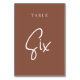 Cartões simples e chic em tons de terra, marrom e branco, fazem uma declaração elegante no seu casamento ou evento. Design apresenta "mesa [number]" em uma combinação de olhares de serif clássica e de caracteres de script manuscritos. Design repete-se de ambos os lados. Cartões numerados individualmente vendidos separadamente; solicite cada número de tabela individualmente da nossa coleção.