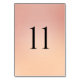Modern wedding table number cards designed for elegant and minimalist receptions.