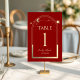 A Mística Escura Vermelha Dourada Sol Lua Estrelas Astronomia Números de Mesa de Casamento apresenta um sol dourado, lua e estrelas em fundo vermelho-adark. Dentro é a sua informação de convite de casamento. Personalize editando o texto nas caixas de texto. NOTA: personalize com os números de tabela um a um e adicione ao carrinho individualmente. Projetado para você pelo Evco Studio www.zazzle.com/store/evcostudio