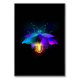 Voz mecânica, antiga, com lâmpada e asas finas brilha cor de laranja, roxo, turquesa sobre fundo preto. Estilo Steampunk.