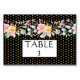 O fundo preto e ouro com banda floral cria um aspecto festivo, mas elegante. Personalizar com informações de Mesa na parte frontal e traseira do cartão