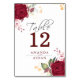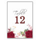 Numeração De Mesa Noiva Floral Rosa Vermelho Borgonha Rústico Número