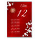 Este cartão de número de tabela de assentos de casamento chinês apresenta flores brancas bonito de cereja e um símbolo de dupla felicidade dourada em um fundo vermelho rubi brilhante. Com caixas de texto para adicionar uma lista de nomes de convidados.