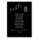 Simples guião elegante, placas de números de tabela em preto e branco com nomes.