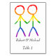 Esta placa de mesa apresenta uma design elegante e bonita para trazer um toque coeso e significativo à sua recepção de casamento. O gráfico representa dois homens, na forma de figuras elegantes de palitos, de mãos dadas. Os números são coloridos num belo arco-íris, simbolizando amor e diversidade. Esta carta é uma maneira maravilhosa de ajudar os convidados a encontrar seus assentos e celebrar sua história de amor com cada detalhe do seu dia especial.