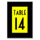 Simples número da mesa preto e amarelo.