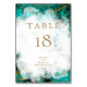 Número da Mesa de Casamento | Deslumbrante pedra preciosa turquesa azul-esverdeada com geodo de cristal acentuado com veios de pepita de ouro marmoreado brilhante e cristal de quartzo - verso coordenado.
