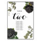 Um design de casamento com rosas pretos e vinhas penduradas no Halloween gótico. Um design branco de Halloween que usa florais botânicos negros e escuros junto com a tipografia da caligrafia de vintage. Um design gótico na moda ideal para temas de casamento de Halloween. Um único design de mesa de casamento de rosas pretos. Os convites de casamento e outros artigos de papelaria também estão disponíveis. Personalize o número e adquira cada número mesa individualmente de acordo com quantos números de tabela você precisa.