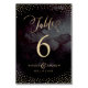 Design de caligrafia à mão e pontos de ouro glamourosos confetti sobre fundo de cor d'água preto escuro no céu escuro, efeito brilhante metálico de ouro, moderno, limpo e elegante, perfeito para casamento vintage ou casamento no inverno à noite. Personalize as suas próprias cartas de números da mesa e adicione um toque pessoal ao seu casamento! Veja todas as peças correspondentes na coleção abaixo.