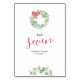 As cartas de números da tabela de Natal apresentam uma coroa de folhas verdes de aquarela e arco vermelho, moldando seu número de tabela em preto rico. Personalize com seus nomes e data de casamento, ou nomeie cada mesa para um toque pessoal extra. Design repete-se no lado oposto. Coordena-se com a minha suíte de convites de eucalipto e pode ser usada para chá de panela de inverno, janto de recepção e festa e funções corporativas de feriados. Para mais informações visite o VG Invites no Zazzle.