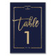 Tipografia Dourada Chic em meio quadro de ouro azul marinho personalizável, e faux rosa geométrico stripes chic table number casamento, perfeito para elegante casamento de praia.