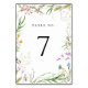 Quadro botânico de flor silvestre elegante, cartão de número de tabela. O cartão apresenta elegantes flores silvestres de aquarela e delicados verdes. Ao encomendar cartões de número de tabela, cada cartão deve ser numerado e encomendado individualmente.