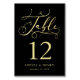 Esta placa numérica da tabela apresenta tipografia de ouro florescente e caprichosa sobre fundo preto. Você pode adicionar seus detalhes no menu personalizar. Este menu faz parte de uma bela suite de casamento que pode ser totalmente personalizada.