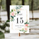 Cartão Elegante de Número de Tabela de Casamento com flores pintadas de aquarela em folhagem rosa-pincelada, branca e verde com uma estrutura dourada. Para personalização mais avançada deste design, clique no botão "Personalizar". Itens correspondentes também estão disponíveis.