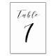 Cartão Elegante nº 7 para festa de casamento. O cartão de mesa do casamento apresenta um belo roteiro minimalista preto. Estão disponíveis outros números. Projetado para você pelo Blackberry Boulevard.