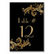 Adicione um toque elegante às suas mesas de recepção de casamento com estas placas de números de tabela de na moda feitas em preto-jato, com tonalidade dourada, na parte superior e inferior da placa. Personalize o texto do tan do ouro para cada mesa na sua recepção.