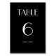 Moderno Retro Sólido Numero de Mesa Negra Adicionar charme de eterno ao seu casamento com este elegante número preto de tabela retrógrada. Apresentando uma tipografia inspirada na safra e um clássico design preto-e-branco, é perfeito para temas de casamento formais, de arte ou minimalistas. Totalmente personalizável e fácil de combinar com qualquer decoração de recepção.