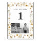 O cartão de número da tabela de buho moderno apresenta uma fonte serif moderna e flores silvestres delicadas em tons suaves de rosa pincelado, amarelo, roxo, marfim e verde. O número da tabela corresponde à idade do casal e apresenta fotos a preto e branco delas nessa idade. Crie quantos números de tabela forem necessários, alterando o "1" para o número desejado, trocando as fotos por si e adicionando 1 item ao seu carrinho. Repita para quantos números de tabela forem necessários. Verifique os itens correspondentes nas coleções "Chás de panela" e "Watercolor Wildflower".