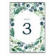 Este magro número de mesa de eucalipto e verde é perfeito para um casamento elegante no quintal. O design botânico moderno apresenta um belo eucalipto azul-aquarela e folhas verdes. A placa impressão na frente e atrás (lado duplo). Adicione cada número de tabela que você precisa ao seu carrinho individualmente.