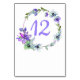 Bonito cartão de número da mesa de casamento feito em branco, com uma coroa floral colorida, com o número da mesa feito na lavanda. Personalize o número de cada mesa na sua recepção. Os produtos correspondentes estão disponíveis.