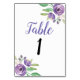 Numeração De Mesa Número da tabela Floral de Flor Roxo de Casamento