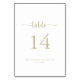Este número de mesa de casamento com caligrafia minimalista dourada é perfeito para um casamento rústico. O design simples e elegante apresenta tipografia clássica e sofisticada em dourado. Este é um número de mesa de dupla face. Adicione cada número de mesa necessário ao seu carrinho individualmente.