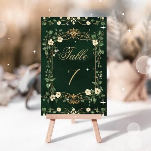 Numeração De Mesa Número de mesa de casamento em verde dourado flora
