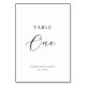Esta elegante mesa de caligrafia negra é perfeita para casamentos e outros eventos. A design neutra apresenta uma carta minimalista decorada com tipografia romântica e caprichosa. A placa impressão na frente e atrás (lado duplo). Os outros números de tabela na coleção são vendidos separadamente.