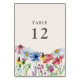 Número da Tabela de Recepções de casamento de flor selvagem que você pode personalizar com qualquer número de tabela, decorado com flores silvestres de cor d'água. Esta design botânica russa tem uma bonito fronteira de flores silvestres, incluindo a margarida-de-papoila-dormideira, a cabeça-seca e o trevo. Uma floral moderna elegante com tema de jardim boêmico e feminino. Por favor, navegue na minha loja na coleção Charm de Flor Selvagem, para obter itens correspondentes.