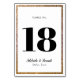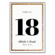 O toque perfeito para a decoração da mesa do seu evento elegante, este número de tabela totalmente personalizado apresenta a tipografia clássica com uma falso cintilação brilhante em ouro quente. Excelente para eventos de recepções de casamento e de gravatas pretas, modifique o texto para nomes de mesas personalizados, locais de eventos, uma data especial e até mesmo um conto.