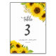 Este número da mesa de girassol é perfeito para um casamento rústico. O clássico design moderno apresenta lindas flores silvestres amarelas brilhantes, com uma vintage no verão ou tema de outono. A placa impressão na frente e atrás (lado duplo). Os itens são impressos exatamente como aparecem na tela quando você adiciona ao carrinho, por isso personalize e adicione cada número de tabela que você precisa ao carrinho individualmente.
