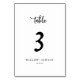 Este número de tabela de roteiro é perfeito para um casamento no campo. O simples e moderno design preto e branco apresenta uma alusão à caligrafia manuscrita caprichosa única, com um estilo de boho minimalista contemporâneo. Personalizável em qualquer cor. Mantenha o design mínimo e simplista, como está, ou personalize-o adicionando seus próprios gráficos e trabalhos de arte. A placa impressão na frente e atrás (lado duplo). Os itens são impressos exatamente como aparecem na tela quando você adiciona ao carrinho, por isso personalize e adicione cada número de tabela que você precisa ao carrinho individualmente.