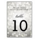 Design de casamento elegante "Número da mesa" com Luzes brilhantes de prata e texto personalizado do número da tabela.
