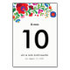 Apresentando um spray colorido de flores inspiradas no bordado mexicano, este número de mesa branca de lado duplo é um excelente adicional ao seu decor de recepção. Personalize todo o texto, incluindo o nome da mesa, o número e se torne criativo com as duas linhas de texto na parte inferior, com seus novos sobrenomes, data de casamento, local e até nomes de mesas personalizados ou uma nota personalizada sobre sua história de amor.