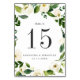 As placas de números de tabela floral chic apresentam um quadro de flores brancas de cor d'água, rosas e peônias, moldando seu número de tabela em branco. Personalize com seus nomes e data de casamento, ou nomeie cada mesa para um toque pessoal extra. Design repete-se no lado oposto. Coordena-se com a nossa suíte de convite para casamento do White Bloom.