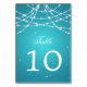 Design de casamento elegante "Número da Tabela" com Turquesa de Cordas de Espuma e texto de número de tabela personalizado.