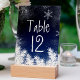 Marinho Elegante Blue Branch Snowflake Casamento no inverno Invitation Collection, Numero da mesa de casamento com um elegante tema de casamento de terra maravilhosa, moderna e de inverno com flocos de neve, queda de neve, poeira estelar e pinças de neve em branco. Perfeito para casamentos no inverno, Natal e casamentos de vésperas de Ano Novo Texto totalmente personalizável
