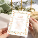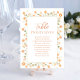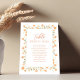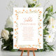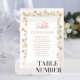Adicione um toque sofisticado ao seu dia especial com esta placa de número da tabela de casamentos, com um layout simples e elegante com um roteiro de caligrafia e tipografia limpa. Projetado em um estilo minimalista, ele mostra lindamente os nomes de convidados e o número da mesa para um assento perfeito. Acentuado com detalhes florais de pêssego suave e verde delicado, é a peça perfeita para aprimorar seu decoro de recepção com charme de eterno e estilo personalizado.