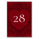 Nosso número gótico bonito da mesa do casamento do coração vermelho & preto é escuro, contudo bonito com nosso design artístico do rolo. São projetados em uma coleção de diversos artigos assim que seu casamento inteiro pode ser coordenado com o mesmo estilo!