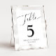 Número mínimo e elegante da mesa de casamento com texto moderno de roteiro que diz "Mesa" no topo.
