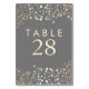 Números das mesas de casamento de cinzas e folhas de ouro