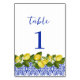 Numeração De Mesa Números de mesa de azulejo azul e limão italiano L
